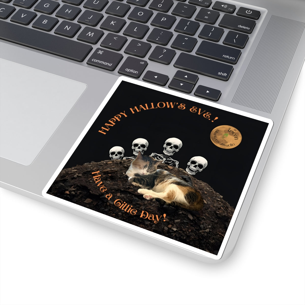 Happy Hallow's Eve. Halloween Cat Kiss-Cut Stickers - Spooky Decor, Cat Lovers Gift, Holiday Party Supplies, Creative Journals, Fun Crafts